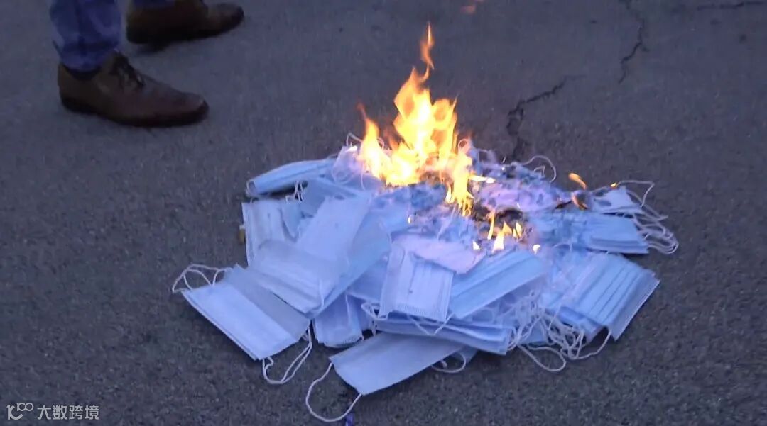 ئامېرىكا ۋاقتى 12-ئاينىڭ 6-كۈنى نەچچە يۈز نامايىشچى ئامېرىكىنىڭ نيۇيورك شەھىرىدە ماسكا تاقاشقا نارازىلىق بىلدۈرۈپ، ماسكىنى كۆيدۈرۈپ «يۈزىڭىزنى ئازاد قىلىڭ» دەپ توۋلىغان.