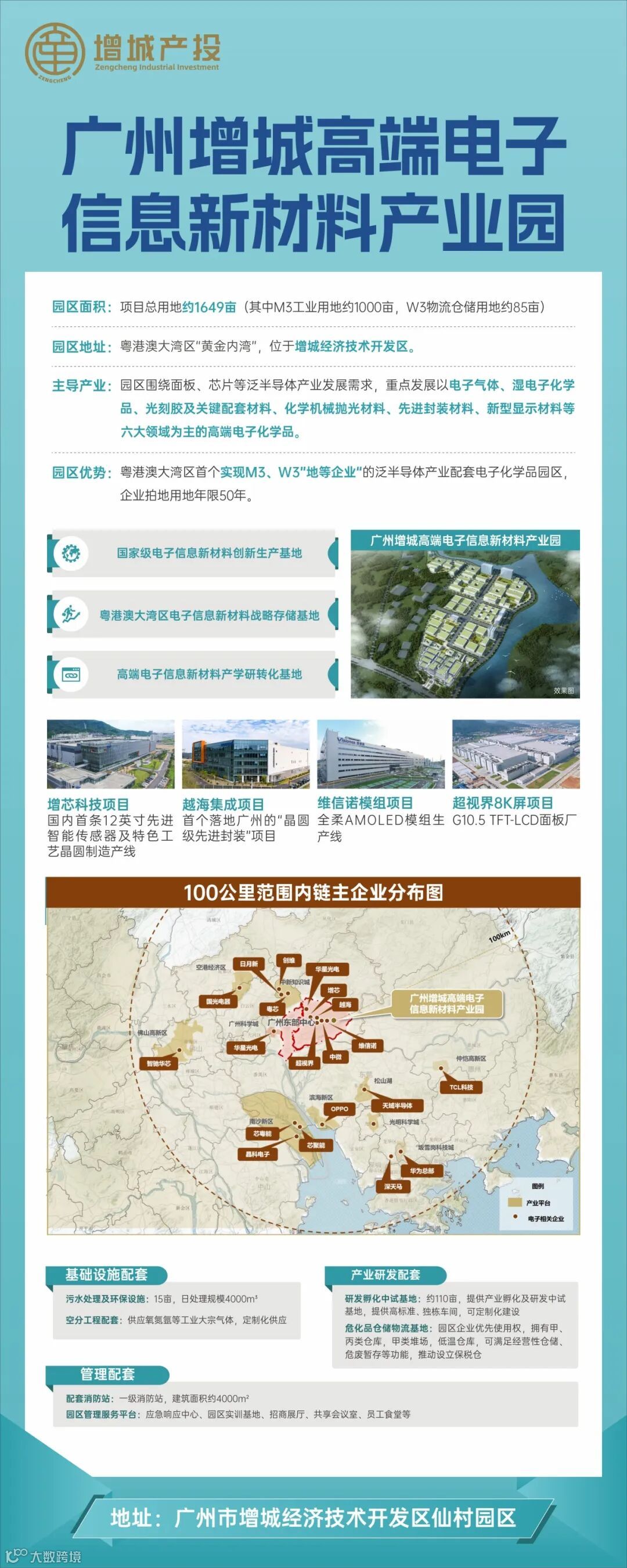 作为广东省重点建设项目、广州市首批特色标杆工业园培育项目,新材料产业园自规划之初便锚定新材料领域专业赛道,是广州东部中心核心区域内稀缺的M3(三类工业用地)、W3(三类物流仓储用地)资源集聚区,更是广州市首个专为集成电路、新型显示产业上游配套的电子化学品专区。