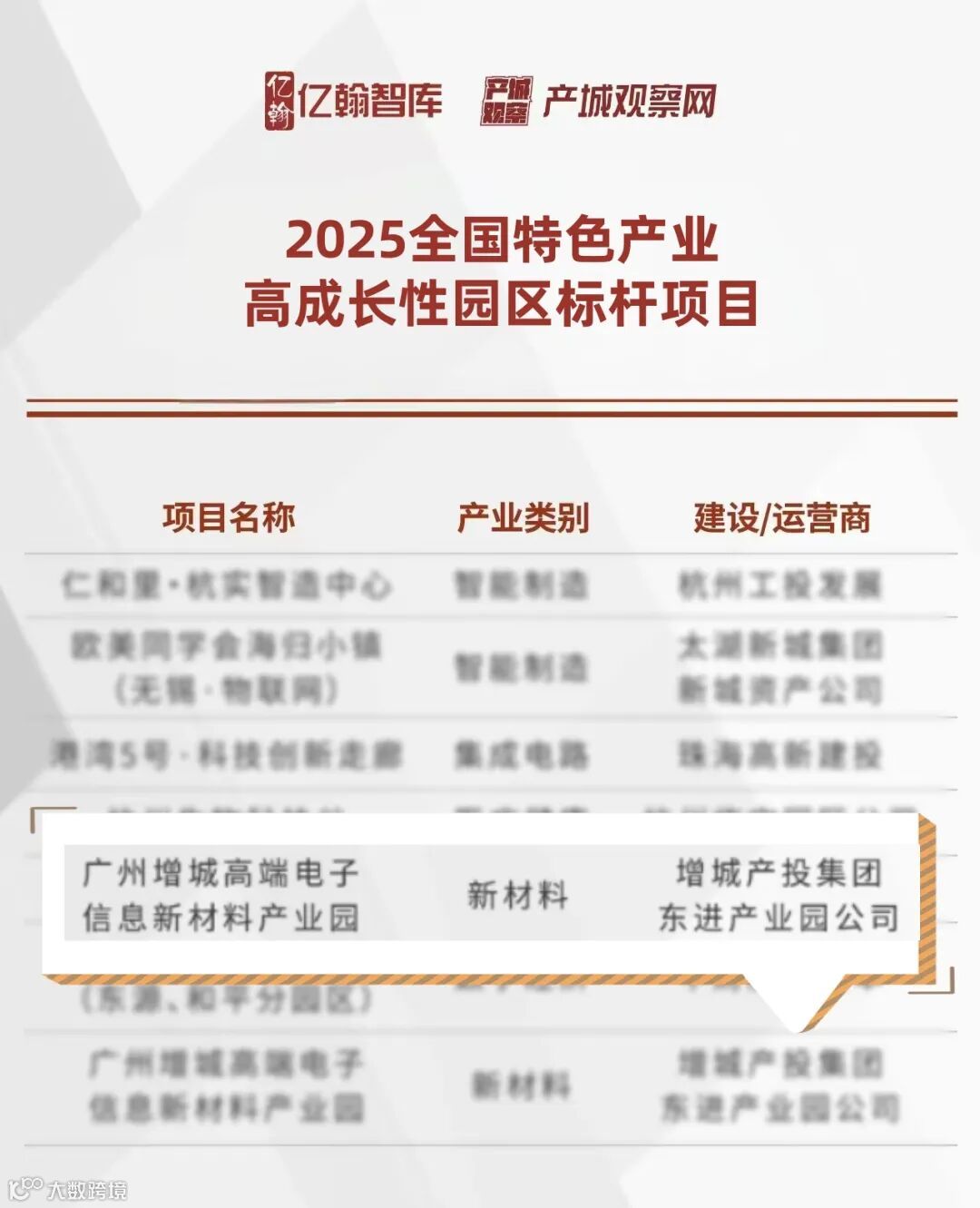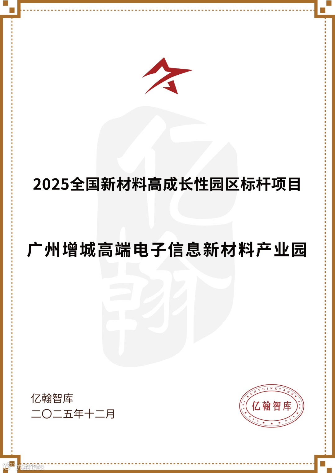 近日,全国产业园区领域权威研究机构亿翰智库在“2025产业园区创新发展大会”上现场发布了2025产业园区优秀案例研究成果。增城产投集团旗下广州增城高端电子信息新材料产业园(下称新材料产业园)凭借突出的产业集聚能力、强劲的创新发展潜力以及完善的配套服务体系,成功获评为 “2025全国新材料高成长性园区标杆项目”。