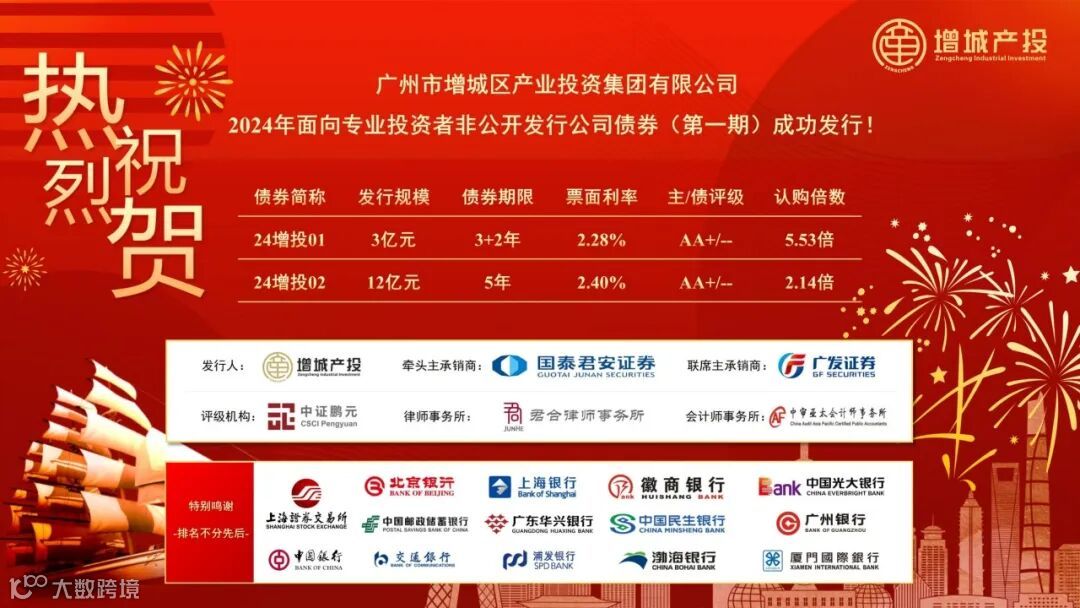 作为产业发展的“资金纽带”,增城产投不断拓宽融资渠道、降低融资成本。五年来,搭建“银行+券商+租赁+…”多元化融资体系,累计获得金融机构授信超200亿元,成功获得AA+信用评级,累计获批35亿元非公开发行公司债券,2025年联合广州产投、工银资本成立10亿元AIC基金,为产业投资提供稳定、低成本的资金保障,连续两年入选出类研究院“中国最佳机构LP榜单”,旗下东进创投基金入选2024年广州最活跃私募股权投资领头羊TOP10。