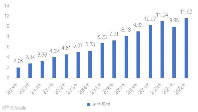 但对于地方政府而言,留存的税收比例被压缩,且留存的税种多是税源分散、征管难度大、征收成本高、收入波动大、土地依赖性强的税种。与此同时,多元目标的政绩考核机制需要更多的资金解决经济增长、污染治理、防范化解重大风险等问题,造成事权与财权的不平衡。近年来地方财政缺口呈逐年扩大趋势。