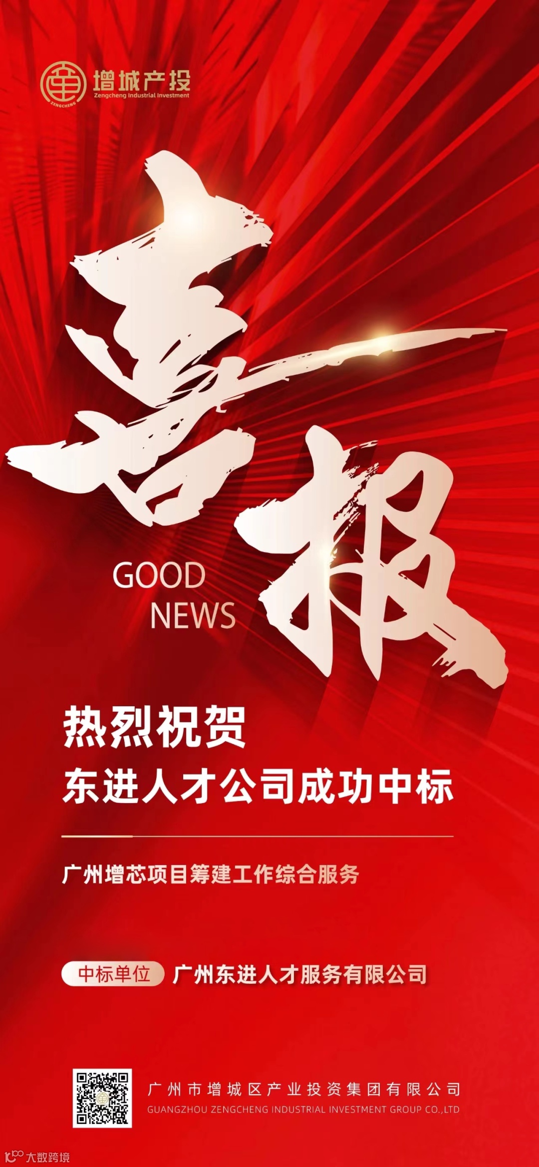 2023年4月28日,东进人才服务公司凭借良好的行业资质,出色的服务水平,顺利中标“广州增芯项目筹建工作综合服务”项目。