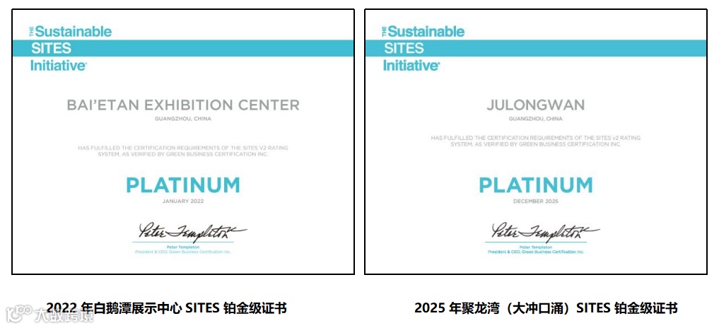 2025年12月23日,广州聚龙湾大冲口涌碧道项目荣获SITES铂金级正式认证。这是继2022年白鹅潭展示中心及滨江碧道获得国内首个SITES铂金级认证后的又一可持续实践。