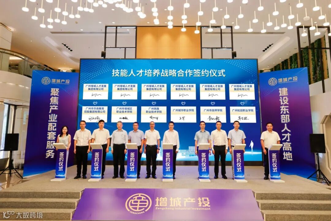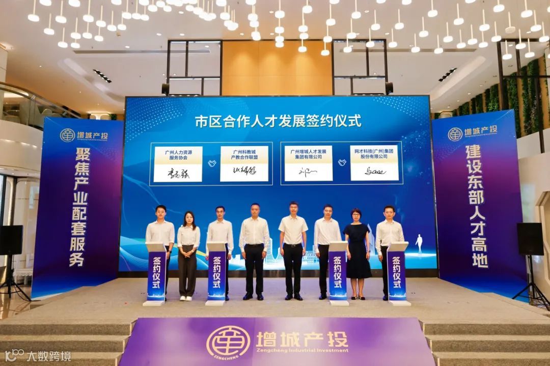活动现场,增城人才集团与市、区两级多个行业领军、互补性强的合作伙伴正式签署了重点产业招才引智、技能人才培养、市区合作人才发展等一系列合作协议。