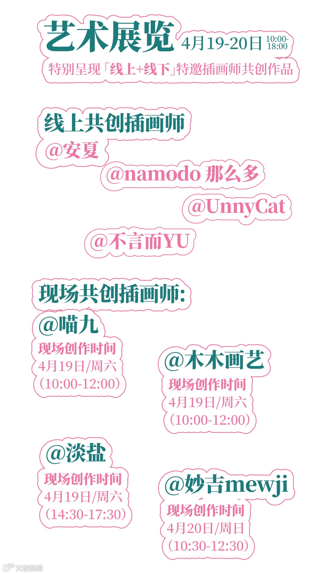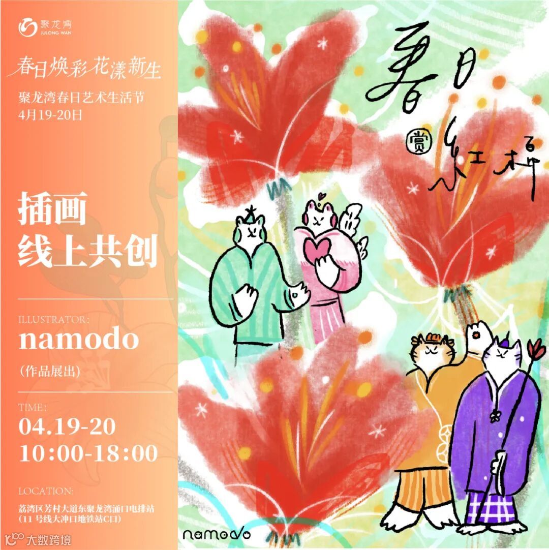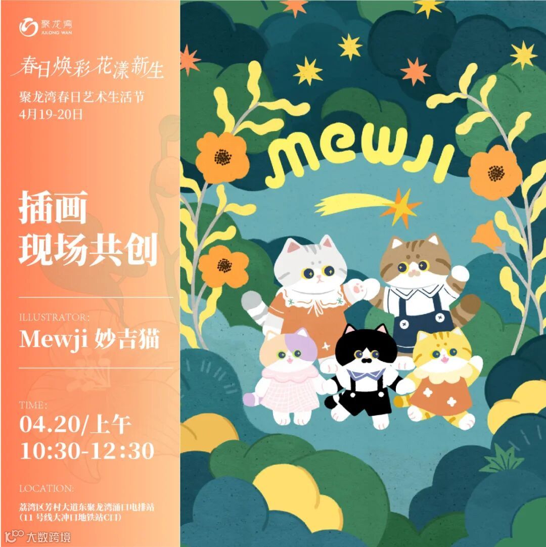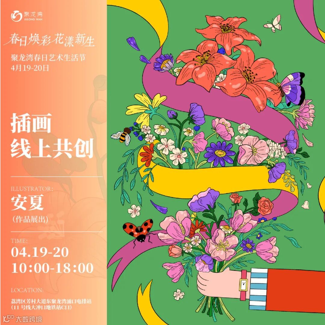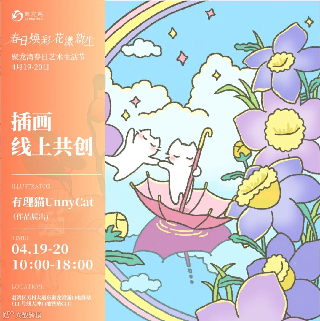 春日的灵感在画布上跃然生辉。本场活动中特别呈现「线上线下插画艺术共创」,特邀新锐原创插画师——妙吉mewji、喵九、安夏、淡盐、木木画艺、不言而YU、namodo那么多、UnnyCat等老师参与, 届时会有老师们来到活动现场,并在现场呈现精彩的插画艺术展,用灵动的笔触和斑斓的色彩,勾勒出一幅幅春日画卷。漫步其中,仿佛置身于一个充满诗意与想象的艺术世界。