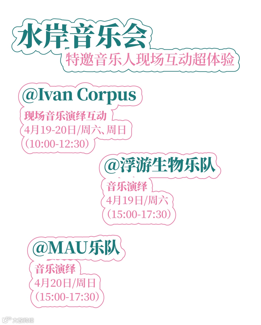当音乐与自然相遇,旋律随风飘扬。热爱音乐的人们汇聚于此,特邀Ivan老师、MAU乐队、浮游生物乐队启幕大冲口水岸音乐会,带来春日的温暖与感动。闭上眼睛,让音符与水波共鸣,感受来自身心的放松与释放。