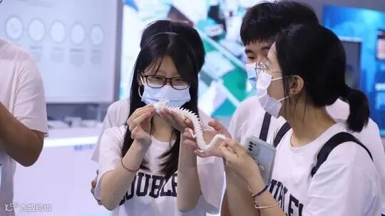 重庆工业职业技术学院的学生们,对3D打印技术非常感兴趣,特别是展品中的铰链式活动关节龙模型。栩栩如生的鳞片,能任意蜿蜒的龙身,让同学们十分惊奇。