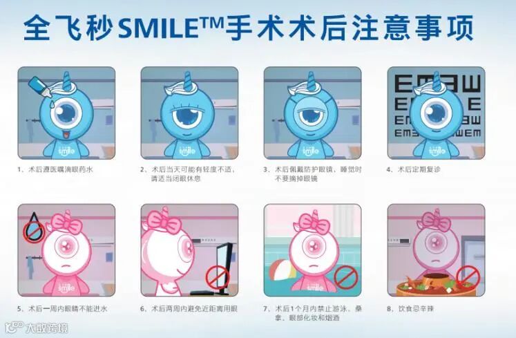 若出现眼痛、视力骤降、分泌物增多等症状,及时找校医或到手术医院就诊,切勿自行处理。