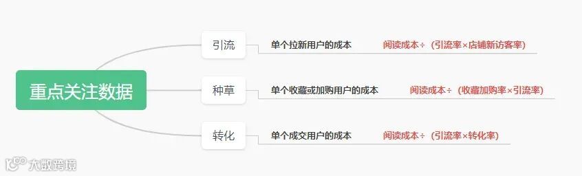 1.单个拉新成本=阅读成本÷(引流率×店铺新访客率)