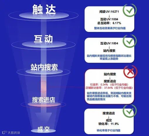 4.搜索进店→成交:关注成交率,评估产品的吸引力和竞争力。