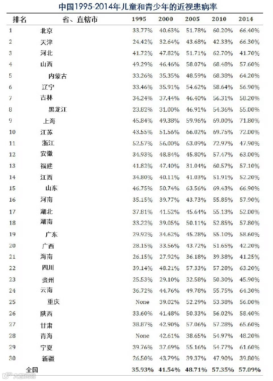 - 从1995年到2014年,近视率一路飙升,北京、天津、河北...一个比一个猛!