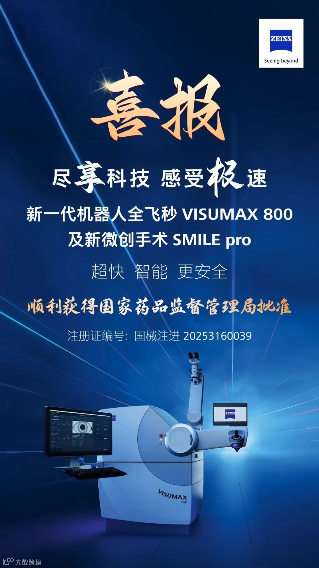 2025年1月20日,蔡司新一代机器人全飞秒VISUMAX 800及新微创手术SMILE pro顺利获得国家药品监督管理局批准!