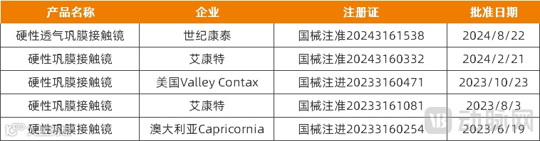 国内已获批的5款巩膜镜产品,资料来源:国家药监局