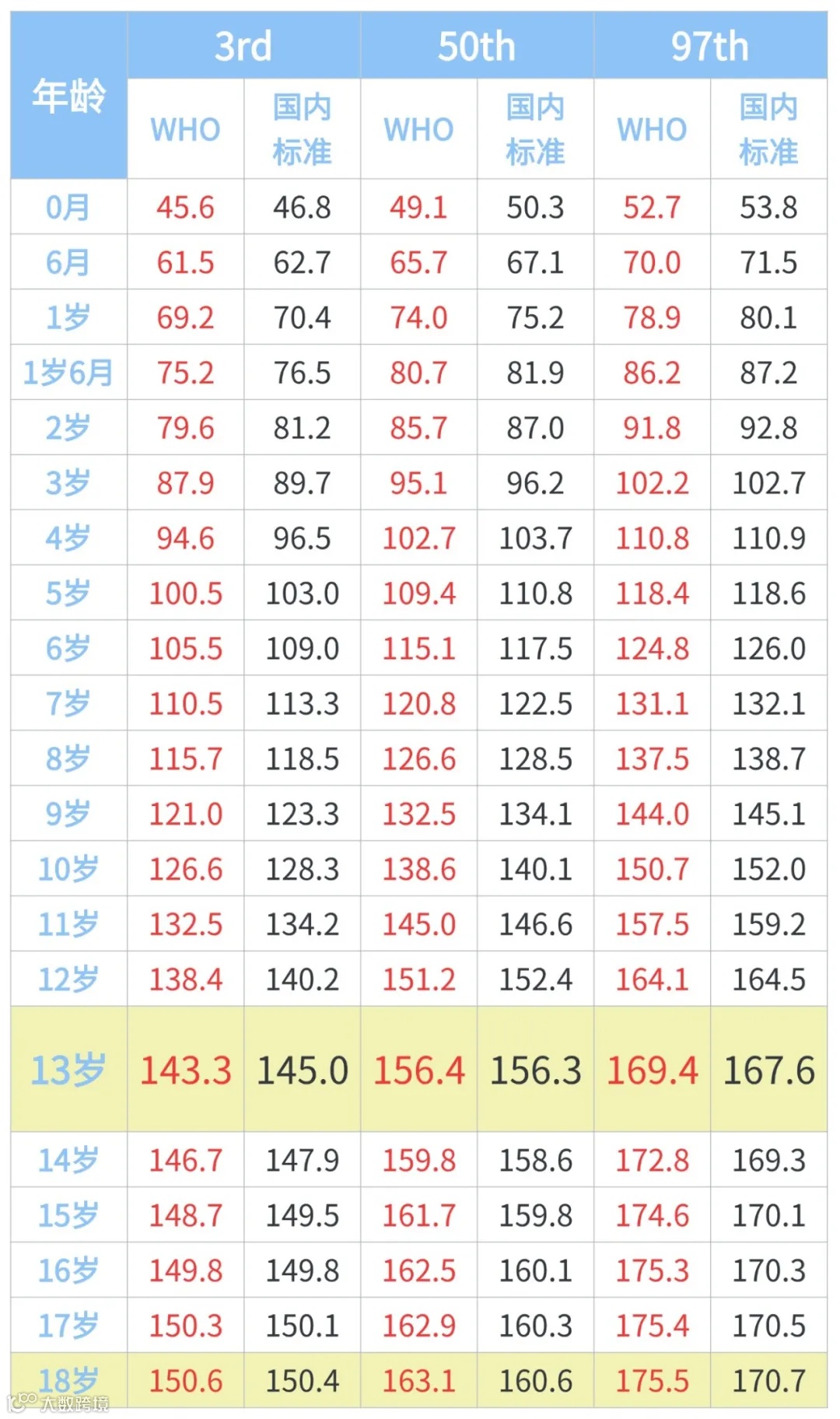 每年身高平均增长5-7厘米。