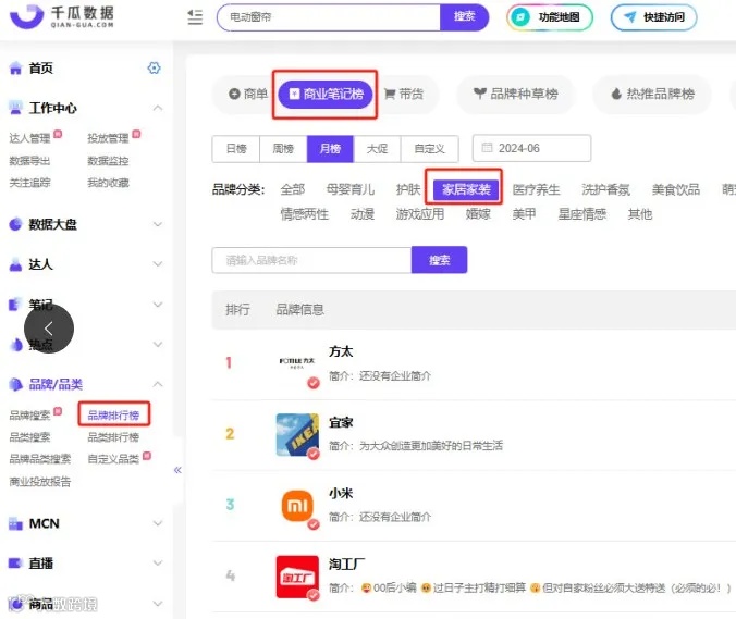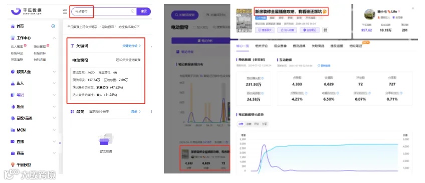 如千瓜等第三方工具,可以帮助品牌快速检索对标账号,分析品类、竞品、赛道等方向的爆文。通过数据大盘、类目关联热门笔记榜单、热点选题等功能,品牌可以更系统地进行内容创作和策略调整。