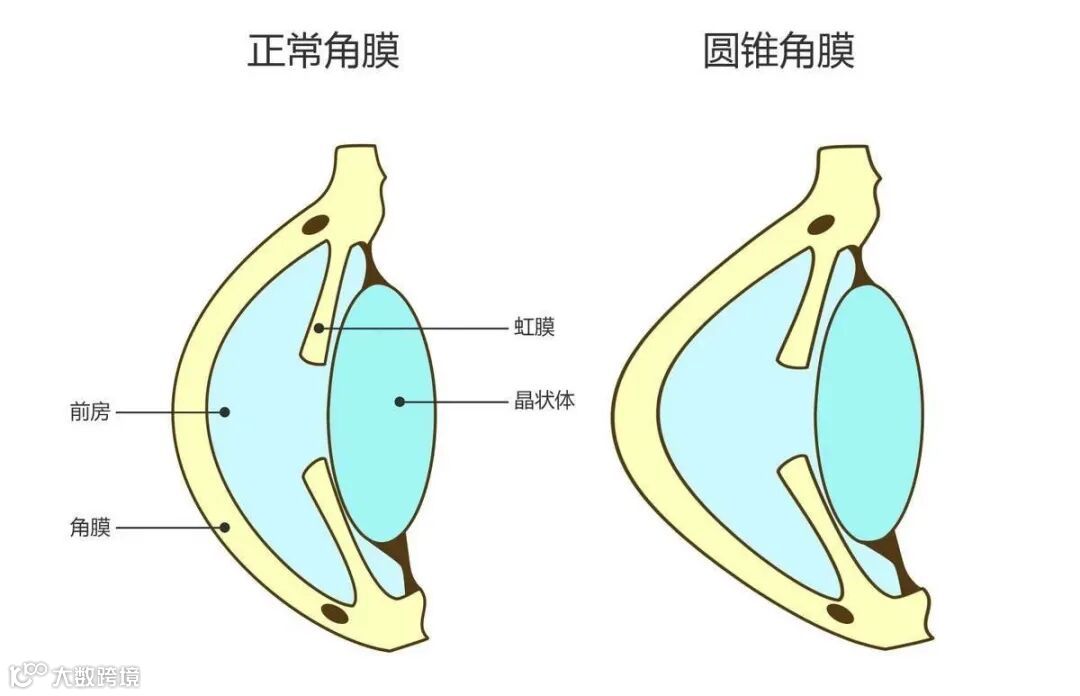 圆锥角膜是一种进行性、双侧性致盲性角膜疾病,这个名字起得挺形象,实际上,就是眼睛的角膜变薄,中央部分向前突出,形成锥形。