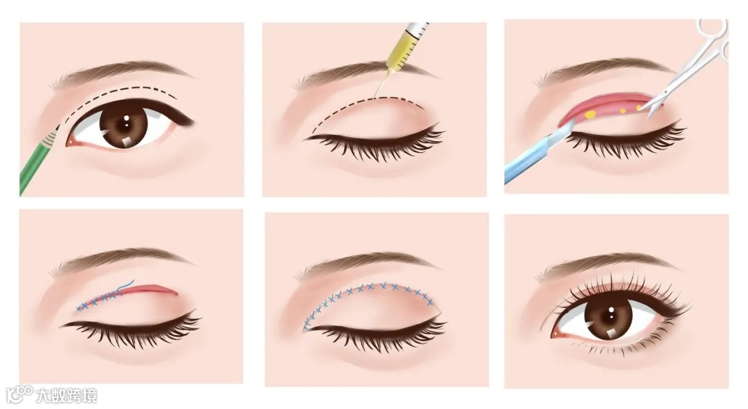 2. **切开法**:适用于各种类型的眼睑,通过切开眼睑并去除适量组织,形成稳定的双眼皮。效果持久,但恢复期相对较长。