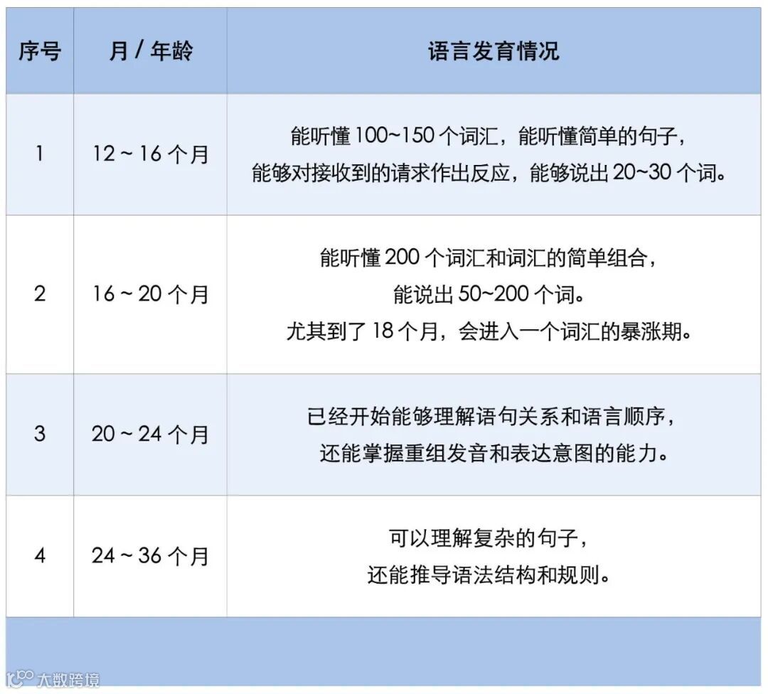 儿童的语言发育是高级脑功能的外在表现之一,不同的发育时间节点会达到不同的发育水平。