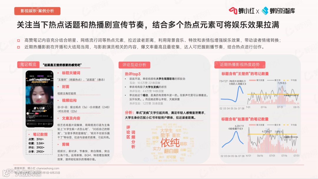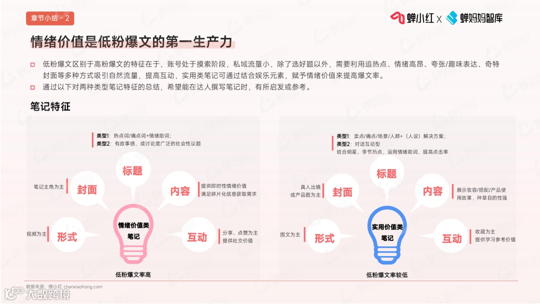 内容属性:满足情感需求的笔记占比74%,爆文率更高,更容易出爆文。影视娱乐类笔记低粉爆文数量最多,且爆文率最高。🎬