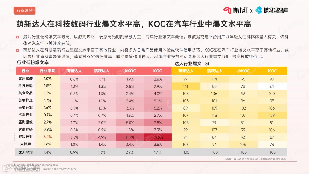 内容生态:从平台爆文率与低粉爆文率的差值来看,影视娱乐与萌宠搞笑低粉爆文率高,适合低粉达人发展。🐾