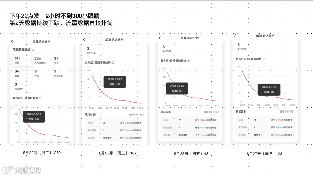 1. 观察小眼睛数:小眼睛代表点击数和笔记的进入量。如果在满足基础条件的情况下,小眼睛数在2-3小时内增长较少,可能是笔记被限流了的迹象。