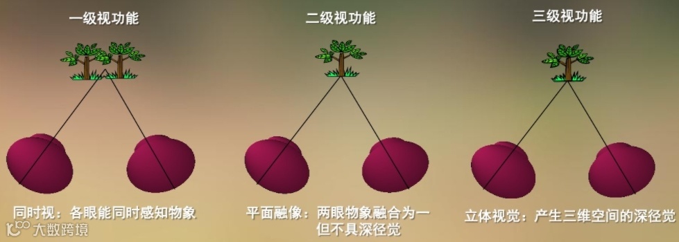 人有两个眼睛,双眼协调、准确、均衡地同时工作,使某一物体反射的光线成像在视网膜,形成两个有轻微差异的物象,通过视觉通路传送到大脑,在皮质高级中枢进行分析、整合、加工,形成一个有三维空间的深度感完整印象的过程。这也是立体视觉形成的过程,是我们看世界的基础。