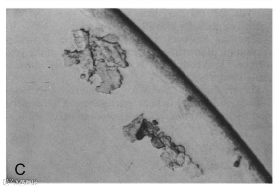 镜片表面凹凸不平的蛋白质沉积物