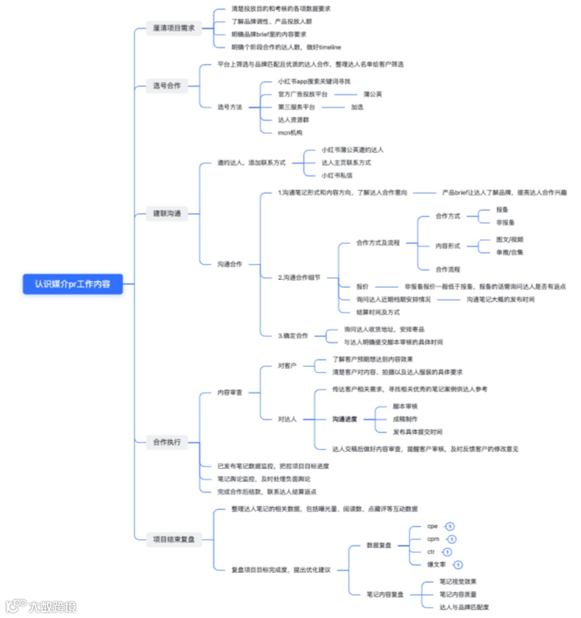 首先,我们可以通过岗位的工作目的来倒推考核指标。媒介Pr的主要工作目的是为品牌带来良好的传播效果。传播效果受多个因素影响,其中包括达人的筛选、创作和传播能力,以及达人内容的打磨。因此,我们可以制定以下几个指标来反映达人筛选和内容打磨的成果: