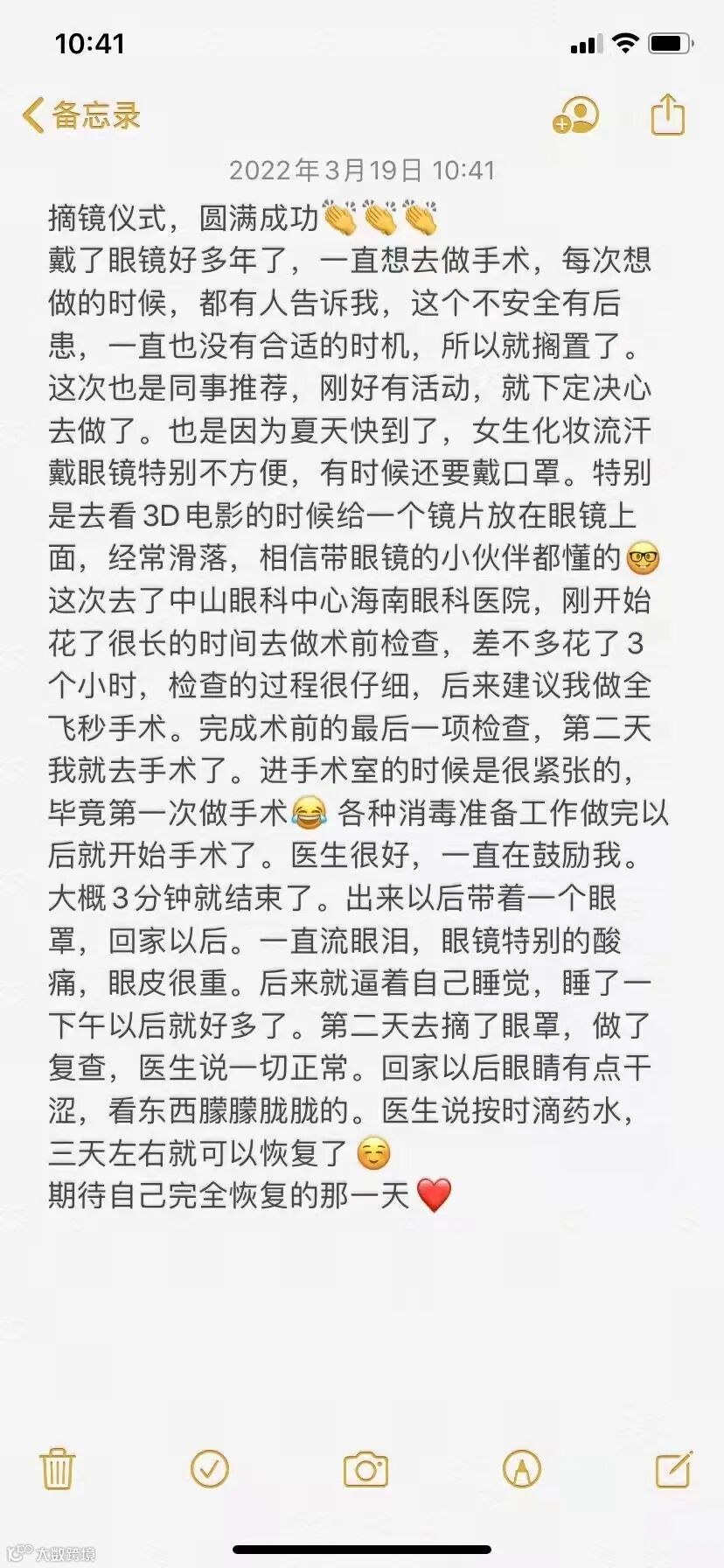 摘掉眼镜,久违的清晰视界令每一位“近视星人”欢呼雀跃、兴奋不已,和相伴十数年的眼镜Say ByeBye的感觉实在太美好了,但鹿可在这里还是要泼点冷水。不管有没有做摘镜手术,鹿可都希望大家能保持一个良好、科学的用眼习惯,不要持续高强度用眼,更不要长时间在黑暗环境中玩手机。