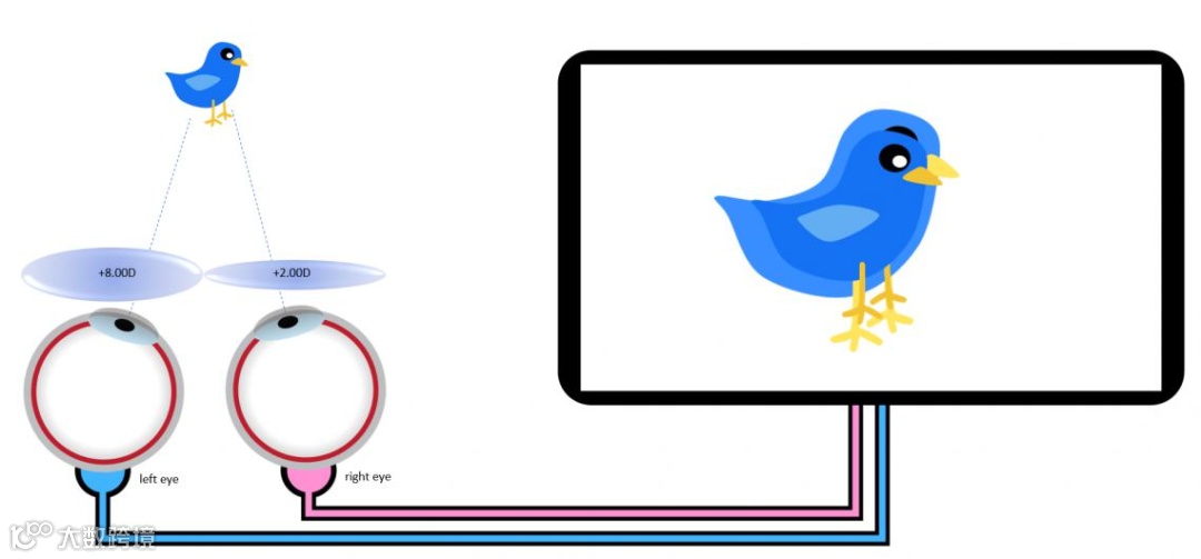 哈哈,你这种情况就是典型的“屈光参差”啊~根据双眼屈光状态的差异,屈光参差可分为近视型、远视型、散光型、混合型这4类。近视型比如就是指一眼近视100度,一眼近视400度,那么就有300度屈光参差;远视同理。或者一眼近视,另一眼远视或正视,两眼散光度数有差距等等这些都属于屈光参差。