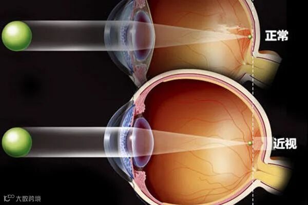 通俗来说,近视就是眼睛的直径(眼轴)变长了(占绝大多数),又或者是角膜的形状异常(占少数),导致光线落在视网膜的前面。