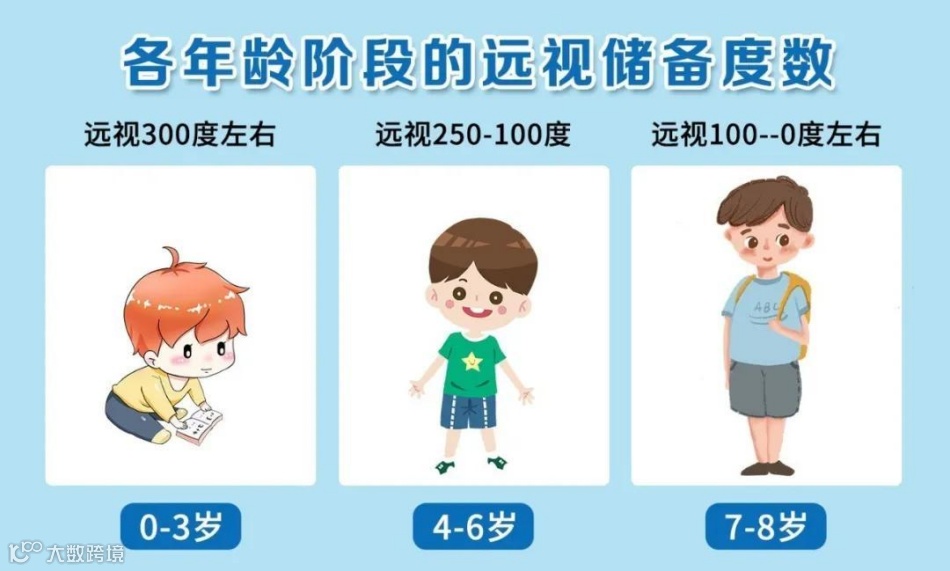 一般来说,孩子在3岁至上学前的这段时间,远视度数大约在100~300度,随着年龄增长,度数越来越低。每个年龄段远视储备没有细化到具体标准,因为每个孩子的发育存在一定的差异性。
