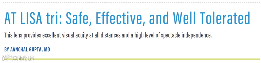 随着屈光性白内障手术时代的到来,患者越来越追求术后远中近全程优视力,三焦点人工晶状体的应用也越来越普及。每一款三焦点人工晶状体的光学设计都是独一无二的,在有效性和安全性上存在一定差异。Gupta博士做了一项临床研究,观察了AT LISA tri 839MP和其他三焦点人工晶状体的术后效果。