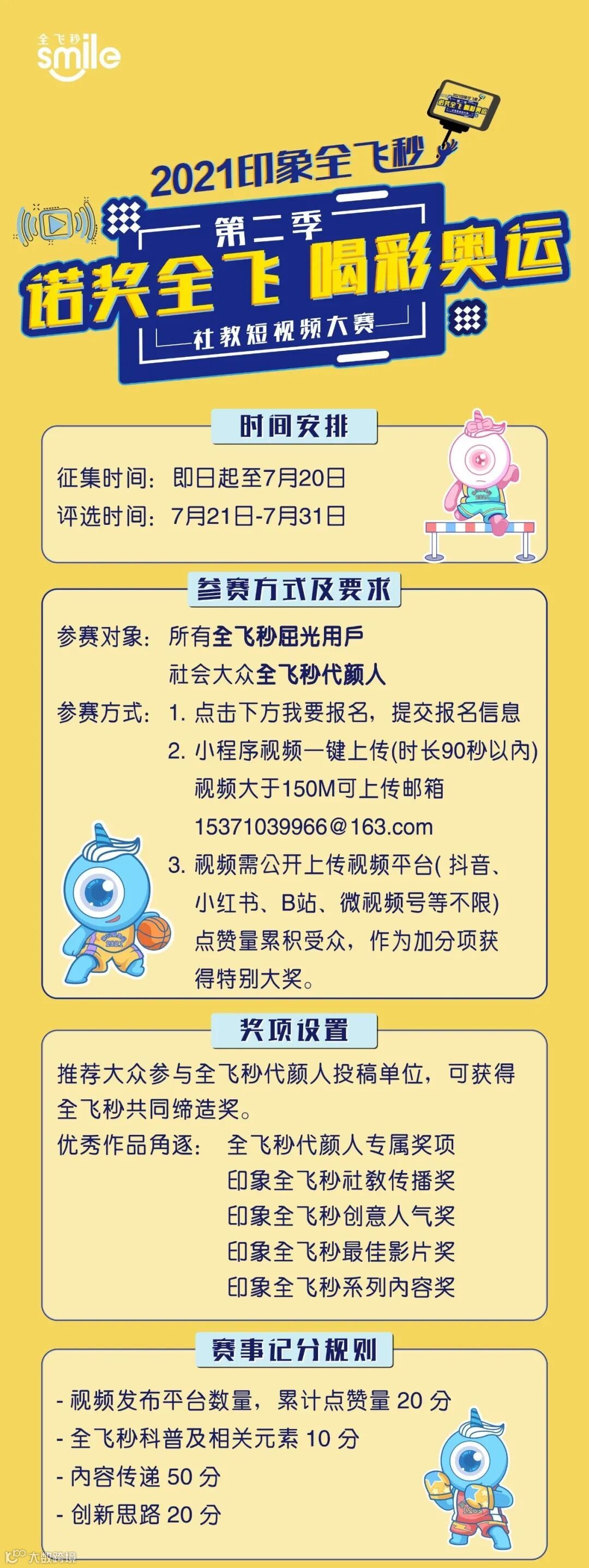 内容可以是:奥运、运动、诺奖、全飞相关创意视频,也可以是科普、剧情、系列故事、热点话题及摘镜记录等内容分享。