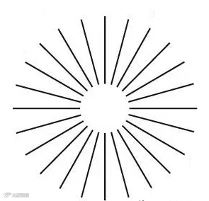 如所有线条均匀排布,没有特别的深浅区分,则不存在眼睛明显的散光现象。如单眼看虚线在某一个方向上特别清晰黑亮,则说明眼睛有一定程度的散光。