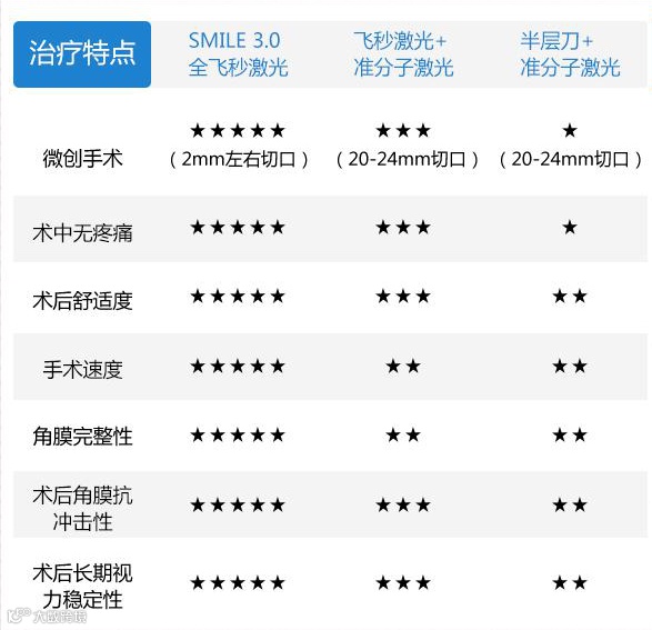 全飞秒激光手术减少了80%的边切,角膜面的损伤也减少了30%。全飞秒近视手术相对而言更舒适,近视手术的安全性与精确度也迈上了一个新台阶。
