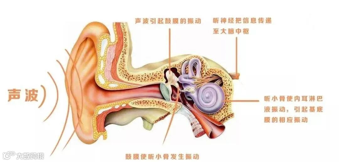 耳朵:外界声波进入耳朵与耳膜产生振动,再分别传送到三块听小骨与耳蜗,耳蜗内的神经末梢再把声音传输给大脑中枢。