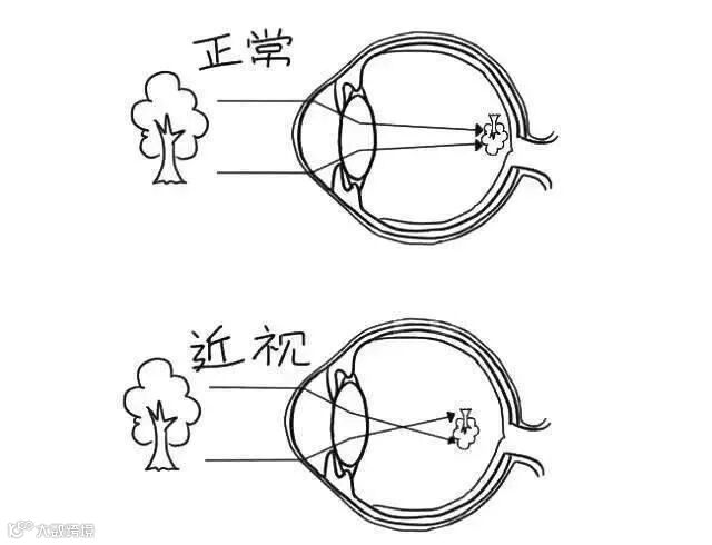 眼轴过长,那么远处的物体成像在视网膜前面,在视网膜上就是模糊的像,导致我们看远的东西不清楚,这就是我们常说的近视。