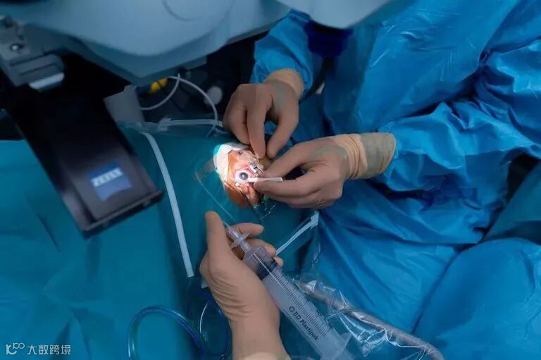 了解完设备,可以开始看看白内障手术过程:开始前先麻醉,滴上三滴眼药水,就是三滴,手术时就不痛了,这叫“表面麻醉”。