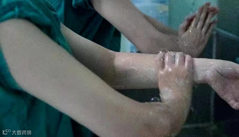 里,主刀医生在干什么呢?换衣、戴帽、七步洗手……..