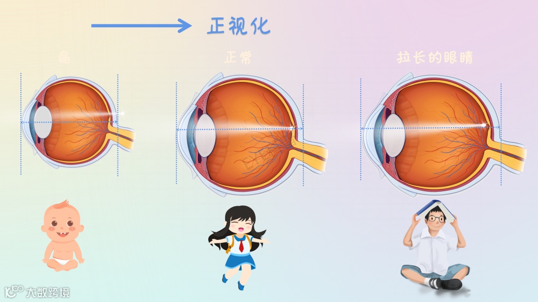 研究表明,儿童的眼轴长度是随着身高变化而变化的,因此随着孩子长大,眼轴也会逐渐增长,眼球屈光度数趋向于正视,