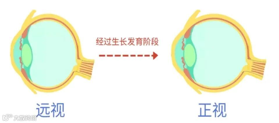 新生儿眼球较小,眼轴长度并未达到成人水平。此时新生儿的双眼处于远视状态,这是生理性远视,也称之为“远视储备”。而后随着生长发育,眼睛的远视度数逐渐降低而趋于正视。