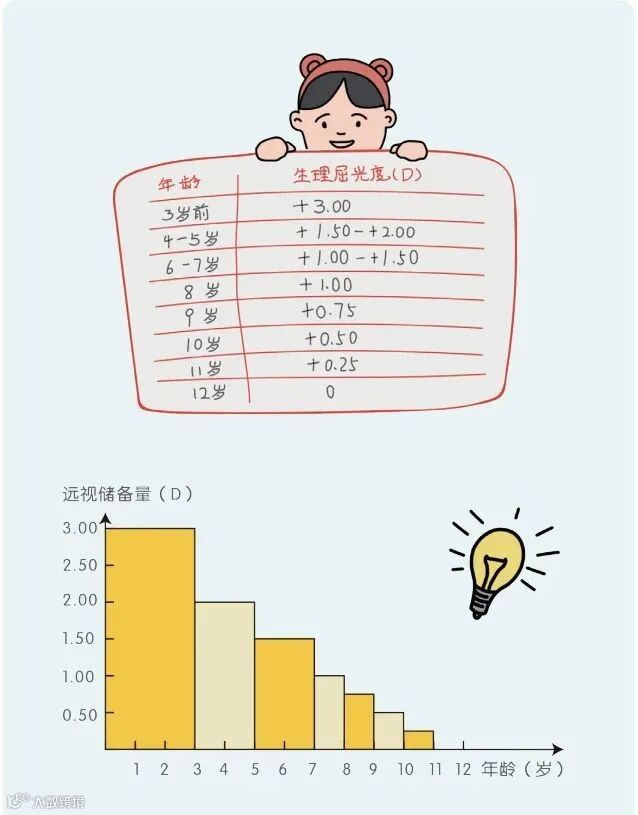 并不是远视储备量越高越好,每个年龄孩子的远视储备量可以参考下表。
