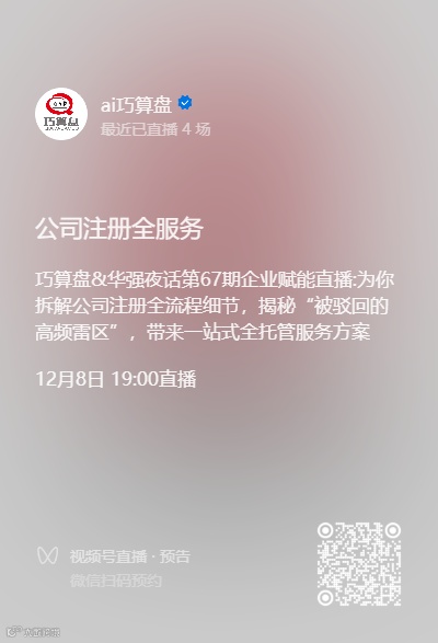巧算盘:深耕20年企业服务领域的实干派!从公司注册、财税合规到资质办理,一站式解决企业成长难题。已帮超万家企业顺利注册公司~