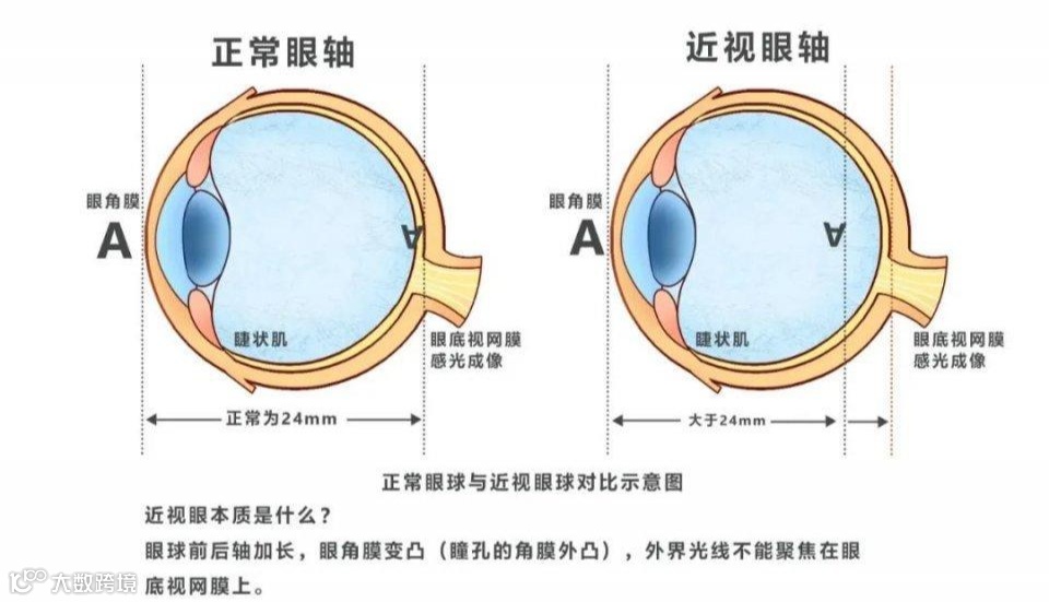人的眼角膜发育,3岁后基本就稳定了,这意味着随着生长发育而出现的近视,几乎都是由于眼轴拉长导致的。我国青少年近视患者90%以上甚至更多属于轴性近视。