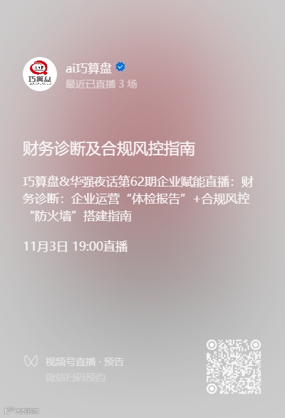 【巧算盘集团】深耕财税领域20年年,持续企业赋能直播60多场次!并且联动【华强夜话】,专门为中小企业定制“轻量化解决方案”——不用砸钱请顾问,也能把财务、风控体系建起来!