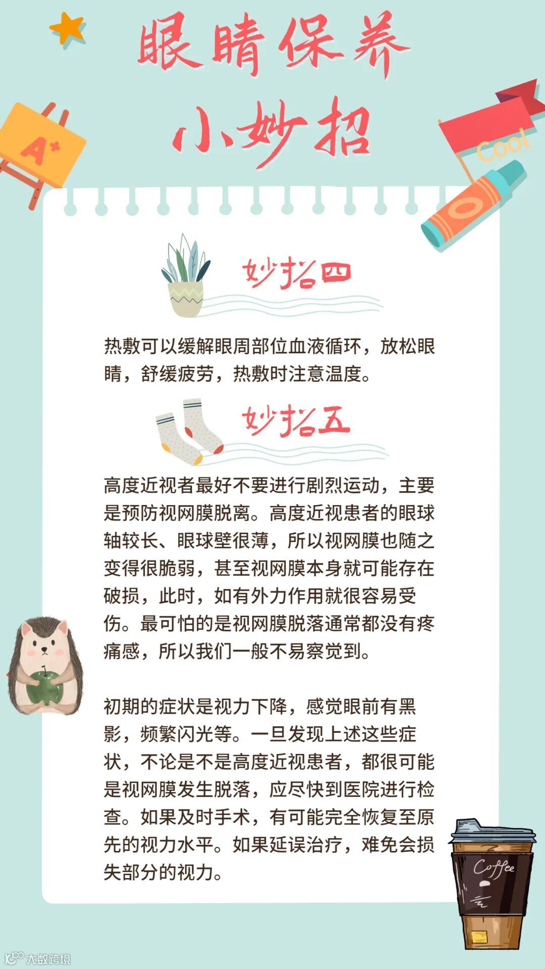 以下是高度近视(≥600度)的眼睛保养小秘籍,点赞收藏转发哦。