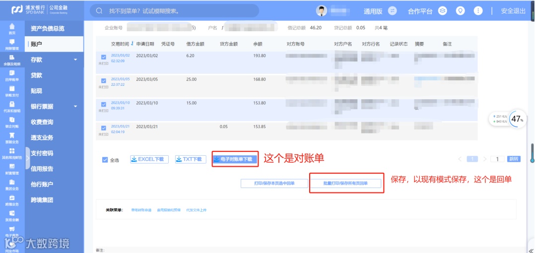 浦发银行对公-下载银行流水