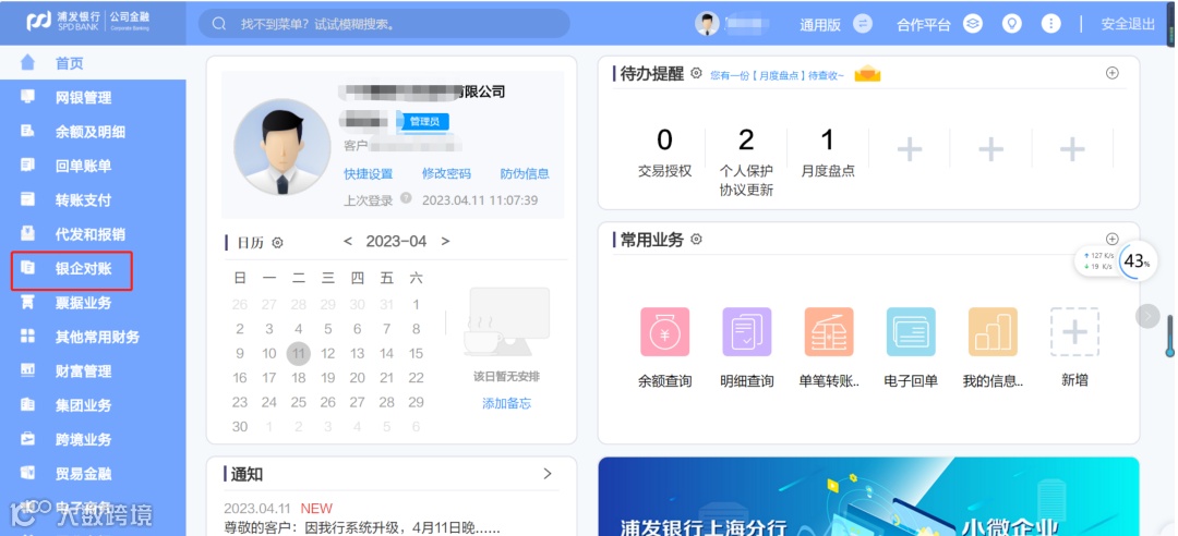 各老板请注意:1.4.7.10月都需要网银对账(每季度需要点击对账,不对账会导致对公银行账户被冻结无法使用)