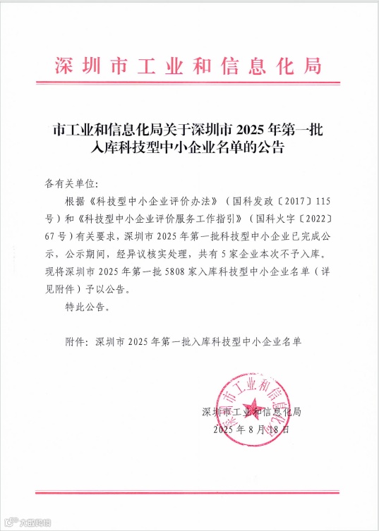 5808家!深圳市2025年第1批入库科技型中小企业名单公告